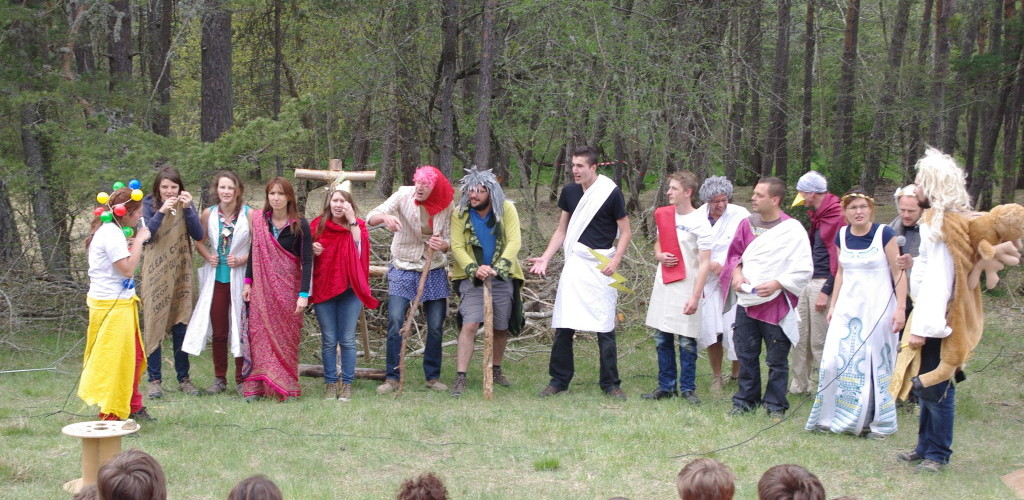 Quand les dieux font la fête sur le Mont Olympe, ils ne font pas les choses à moitié. Tout le monde est invité: dieux grecs, romains, égyptiens, scandinaves, indiens… Quand c’est Bacchus, le dieu grec de la vigne et du vin, qui mène la danse, on peut s’attendre à des débordements. C’est ainsi qu’en faisant la chenille, les dieux sont tombés sur la terre. Par chance pour eux ils sont tombés à Malamaire au beau milieu d’un week-end scout! Les louveteaux-jeannettes et les scouts-guides ont eu fort à faire pour les aider à retourner chez eux.